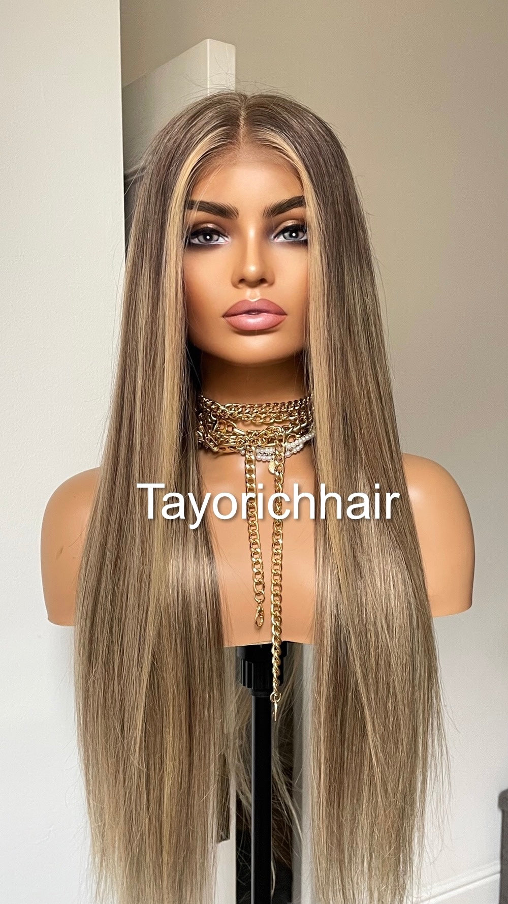 20 Inches Mixed Blonde Lace Front Wig/ Dark Roots /Natural Realistic Soft Synthetic Lace Wigs For Women/Ready To Ship Wigs/ Money Piece Wig