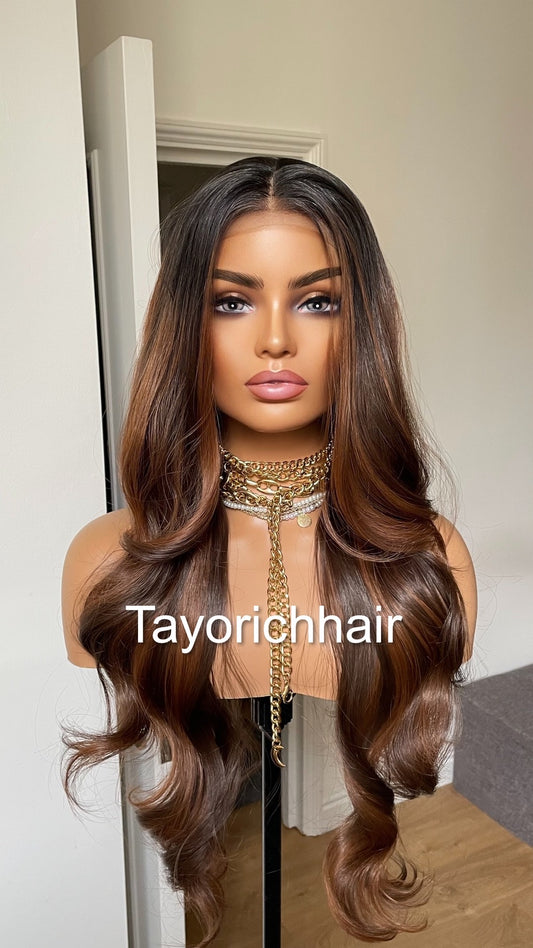Reddish Brown Lace Wig With Black Roots/ Realistic Heat Friendly Sythetic Wig Dark Reddish Bronwn Lace Wig For Women/13x4 Lace Wig