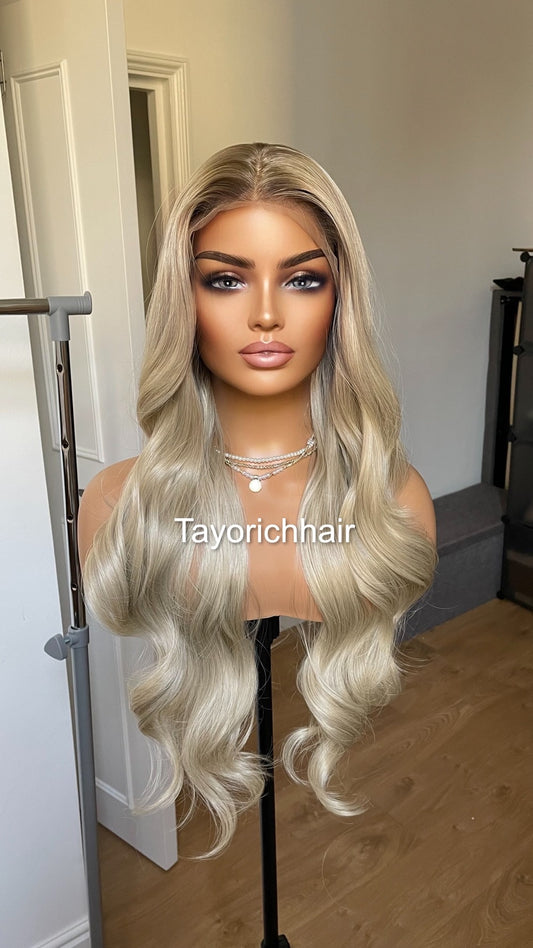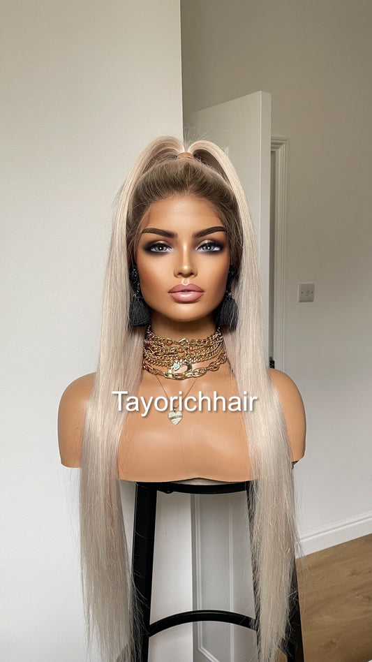 Alexis•Rooted Platinum Blonde Human Hair Wig•24 Inches Straight Hair With Dark Roots•HD Lace•200 Density Human Hair Wig By TayorichhairRegular price £930.00 GBPRegular priceUnit price / per-