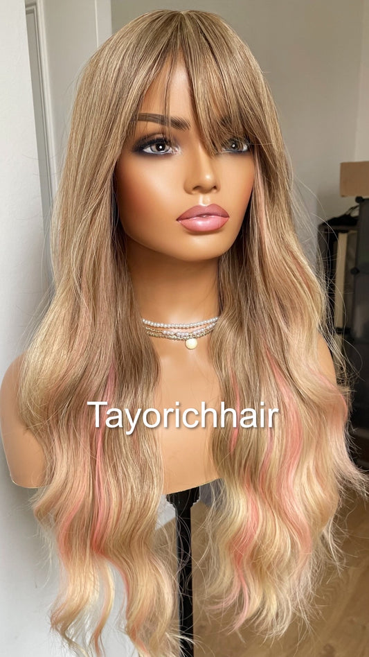 Ash blonde No Lace Wig With Bangs And Pink StreaksRegular price £100.00 GBPRegular priceUnit price / per-