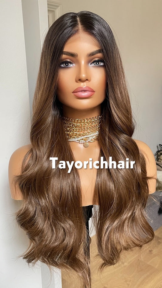 Balayage Mixed Bronzy Blonde Heat Safe Lace Front Synthetic Wig/ Dark Roots/ Long Bouncy Wavy Hair/ Average Cap Size/ Wigs For Women HairRegular price £120.00 GBPRegular priceUnit price / per-