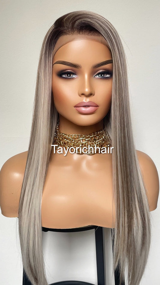 Balayage Ombré Lace Front Wig/ 13x3 Lace Front/ Ash White With Dark Brown Mixed/ Long Straigh Heat Safe Synthetic Wig/ Medium Large Cap SizeRegular price £120.00 GBPRegular priceUnit price / per-