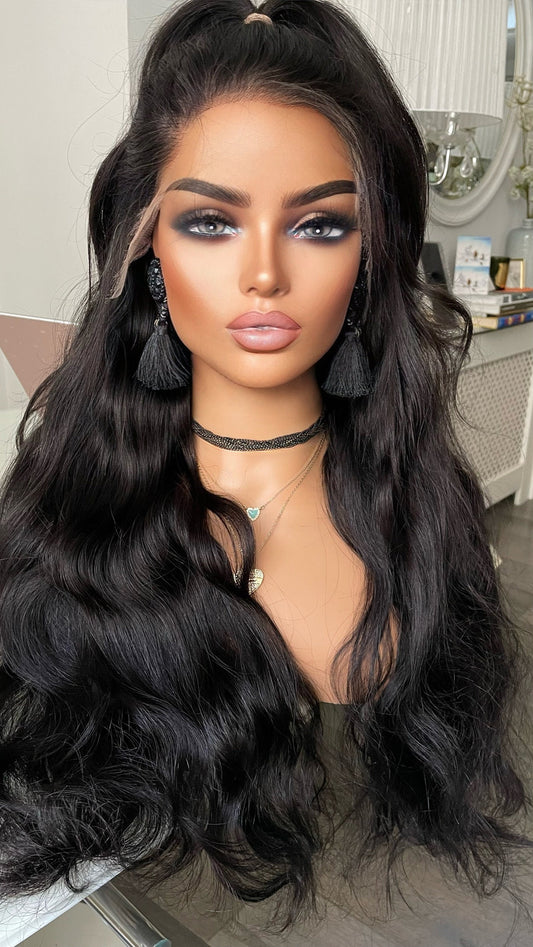 Black Real Human Hair Wig•24 Inches Hair•13x4 HD Lace•Long Wavy Real Hair•180 Density Human Hair Lace Wig•Black Hair Wigs For WomenRegular price £700.00 GBPRegular priceUnit price / per-