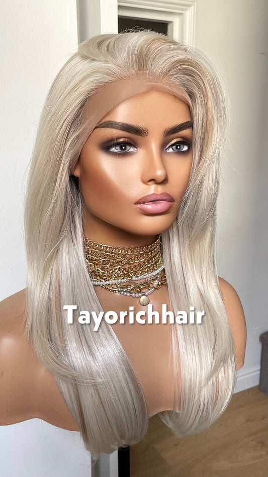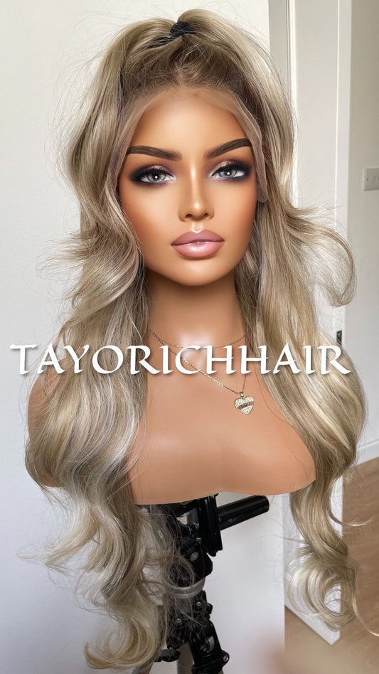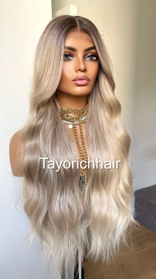 Hollywood Pearl Blonde Lace Wig- Rooted Blonde Celebrity Hairstyle Wigs-Long Elegant Wavy Hair Wig-Pearl Blonde Women Wigs By Tayorichhair