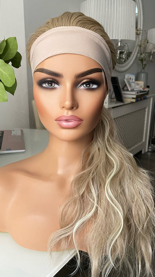 Ponytail Gym Wig With Band / Exercise Wig/ Workout Blonde Wig With Head Band/Heat Safe Synthetic Curly Wig For Running And Daily Workout