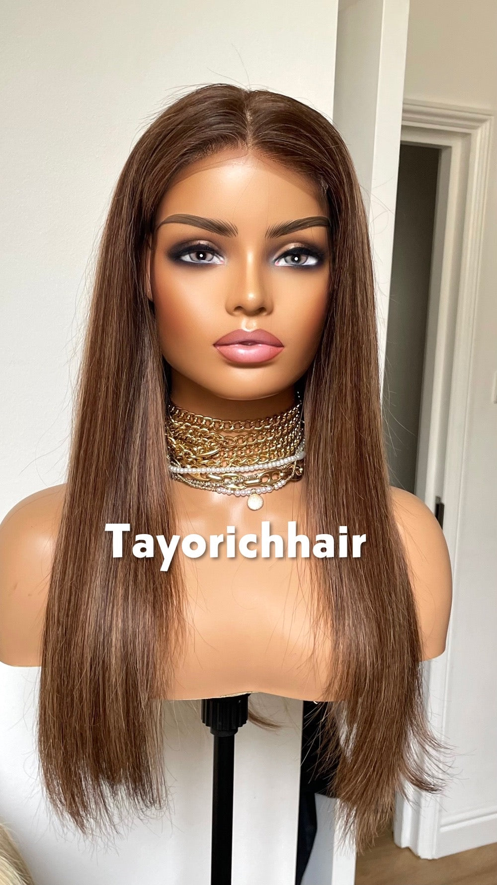Blonde And Brown Human Hair Wig With 5x5 HD U-Part Lace- 18 Inches Straight Wig- Medium Cap Size- Beginner Friendly Human Hair Wigs For Women-Tayorichhair Wigs