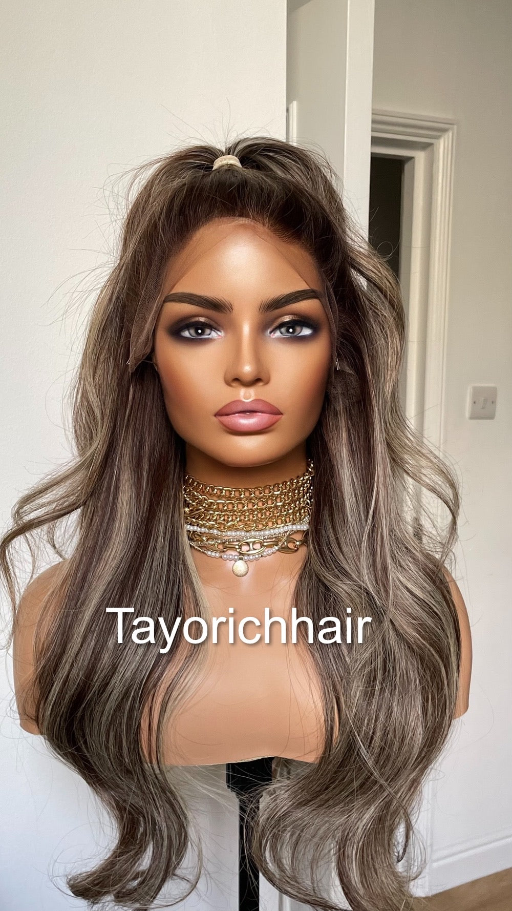 Blonde and Dark Brown Mix Human Hair Wig With Dark Brown Roots-13x6 HD HD Lace Wig With Free Part