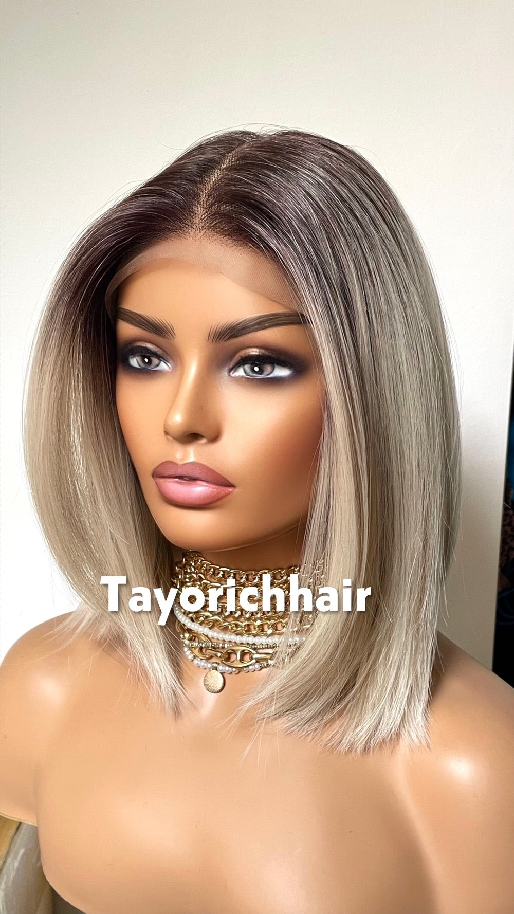 Blonde Bob Synthetic Lace Frontal Wig With Dark Roots