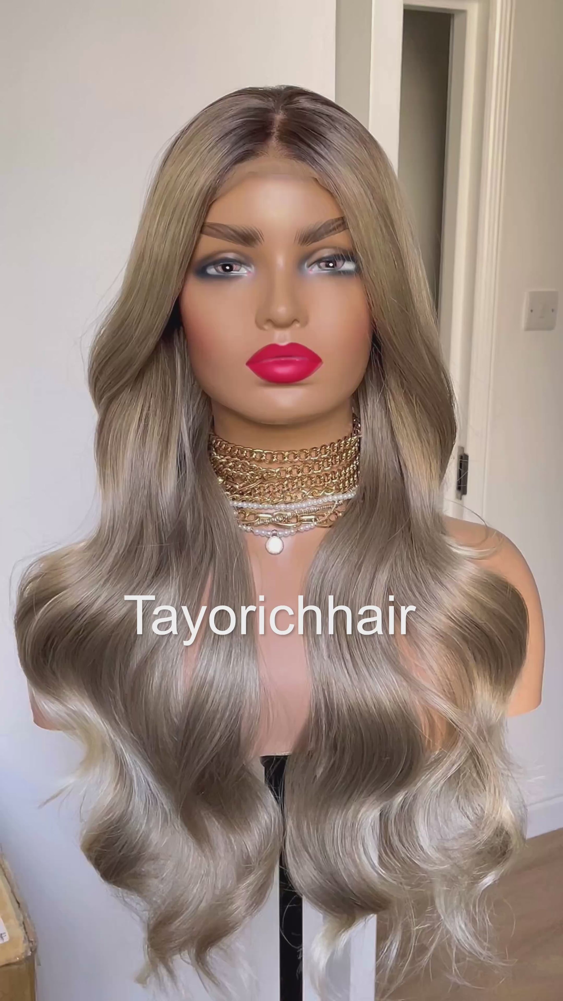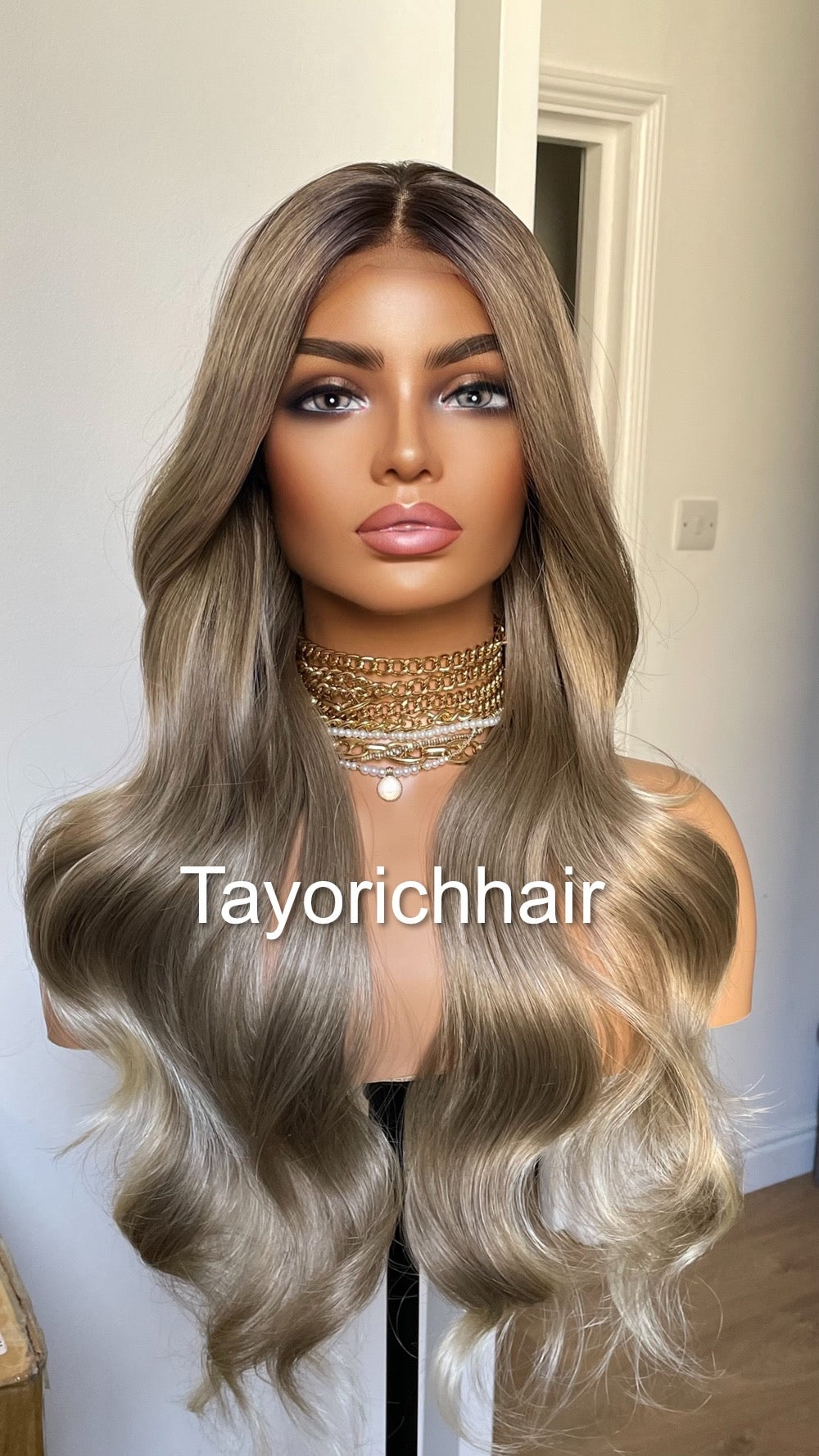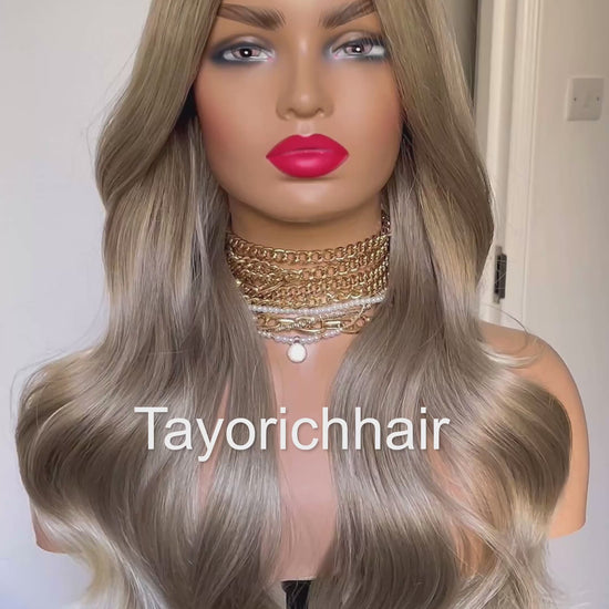 Dark Ash Blonde Synthetic Wig With Dark Roots/24 Inches Wavy Hair Lace Frontal Wig By Tayorichhair.
