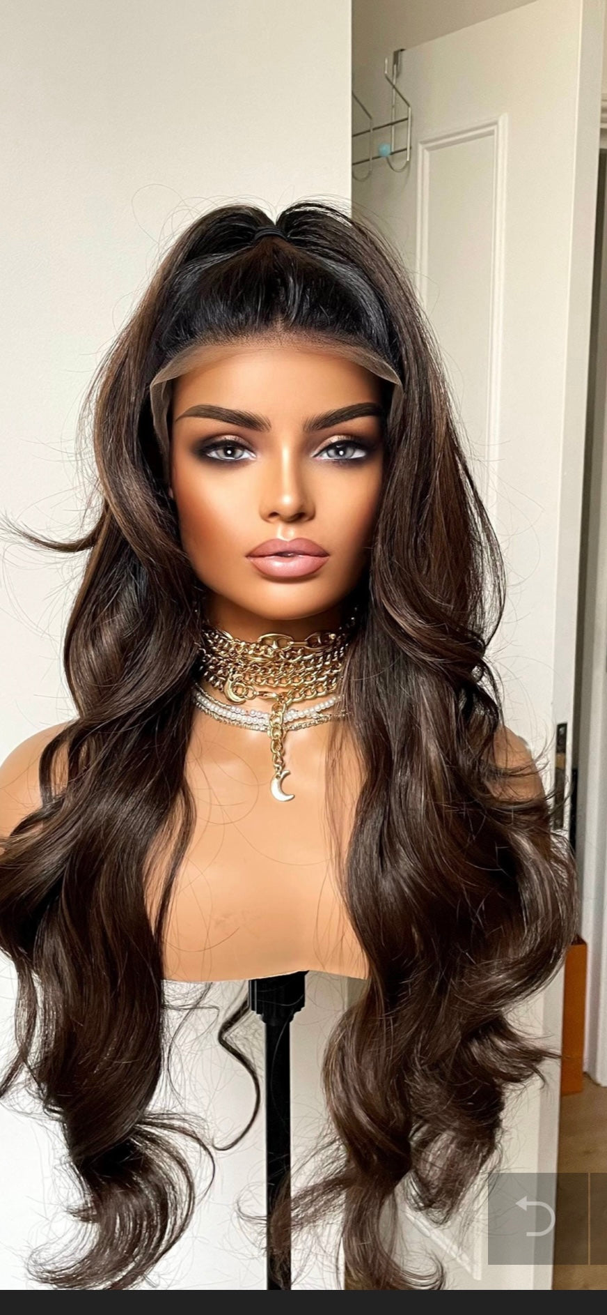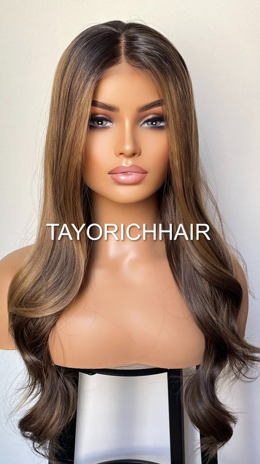 20 Inches Balayage Lace Front Wig/ 13x4 Wide Lace/ Black Roots Brown And Blonde Highlights/ Soft Narural Hair Synthetic Wig For WomenRegular price £125.00 GBPRegular priceUnit price / per-