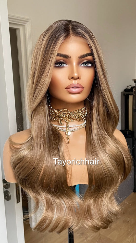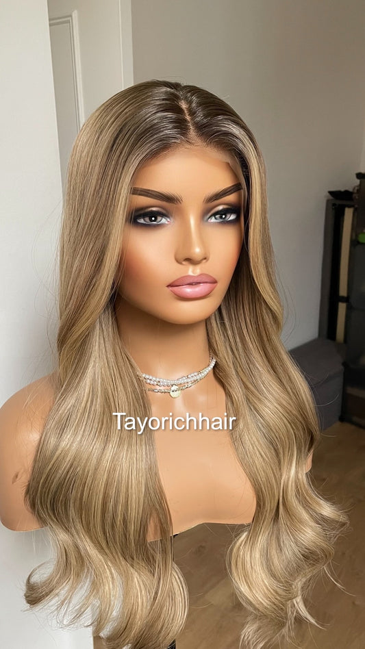 20 Inches Mixed Blonde Lace Front Wig/ Dark Roots /Natural Realistic Soft Synthetic Lace Wigs For Women/Ready To Ship Wigs/ Money Piece WigRegular price £125.00 GBPRegular priceUnit price / per